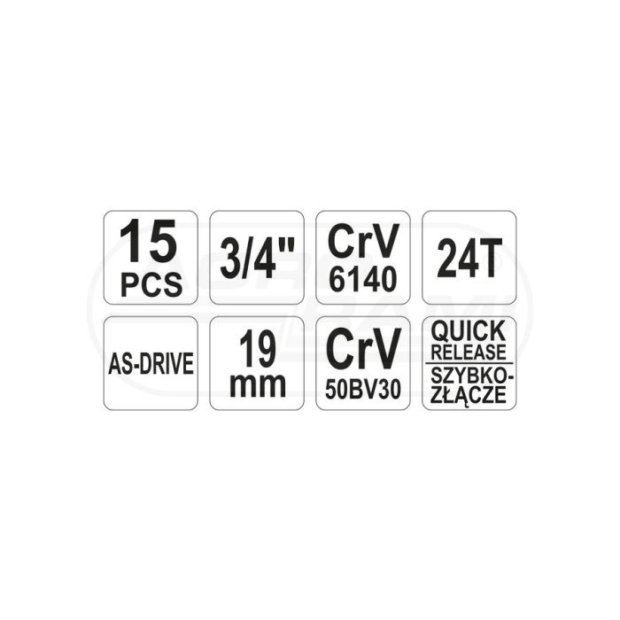 Sada nářadí YATO 3/4" 15 ks