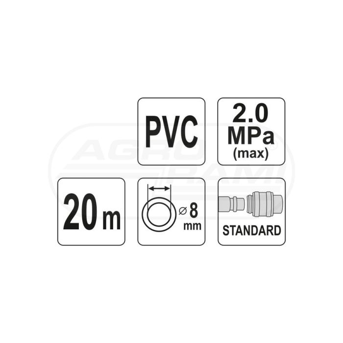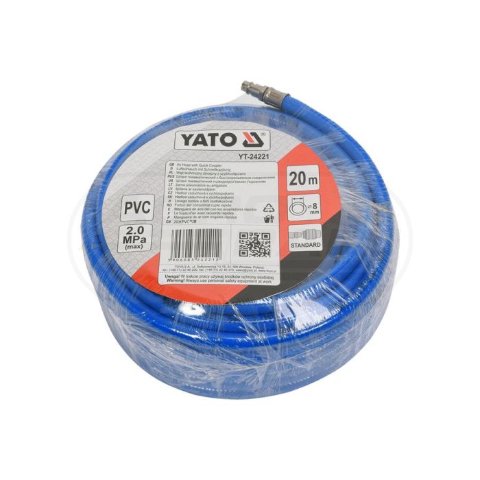 Armovaná PVC pneumatická hadice se rychlospojkami YATO 8mm x 20m