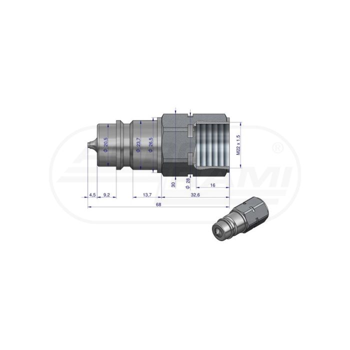 Hydraulická rychlospojka s eliminátorem tlaku M22x1,5 EURO vnitřní závit M22X1,5 ISO 7241-A WARYŃSKI Waryński