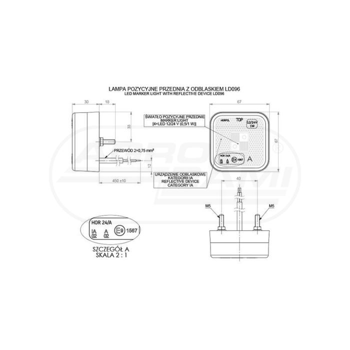 Quadratische Umrissleuchte mit Rückstrahler – weiß HORPOL
