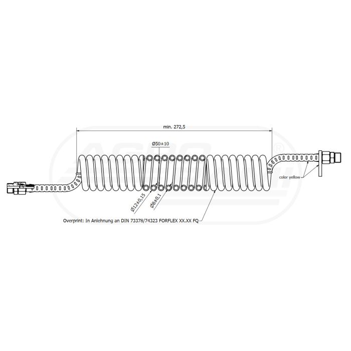 Spiralkabel PU-M22x1,5 / 4,5m (gelb)