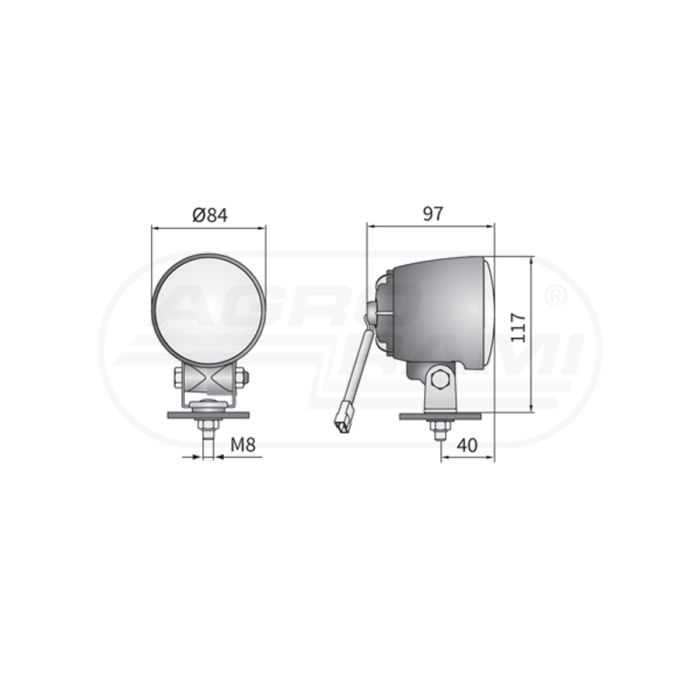 Halogen high beam reflector with cable and AMP Faston connector WESEM