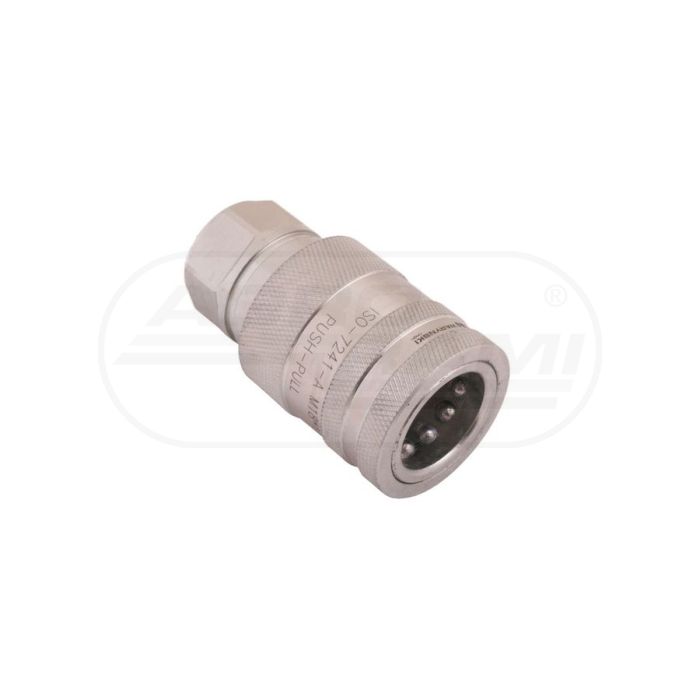 Hydraulic quick connector, socket with internal thread pressure eliminator