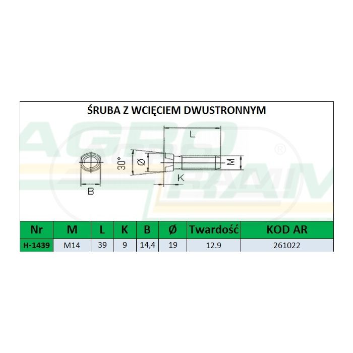 SCREW WITH NUT M14X40 12.9 (30 DEGREES) (DOUBLE-SIDED SLOT) PREMIUM
