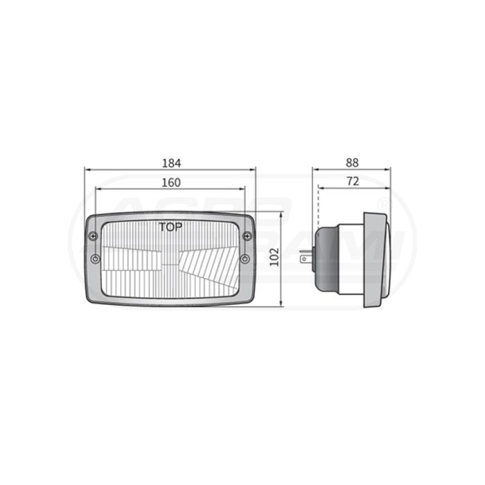 Front headlight type H4 with frame 184x102 WESEM