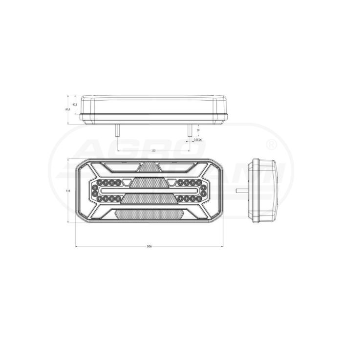 Feu arrière combiné droit LED 1280 DD P 12/24V sans éclairage de plaque WAŚ