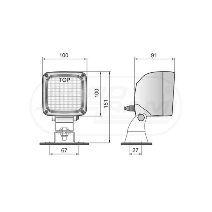 Lampe de travail halogène avec support omega, connecteur AMP Faston intégré et interrupteur WESEM