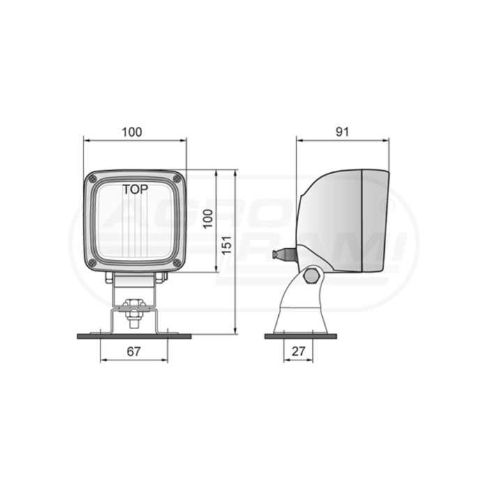 Lampe de travail halogène avec support omega, connecteur AMP Faston intégré et interrupteur WESEM