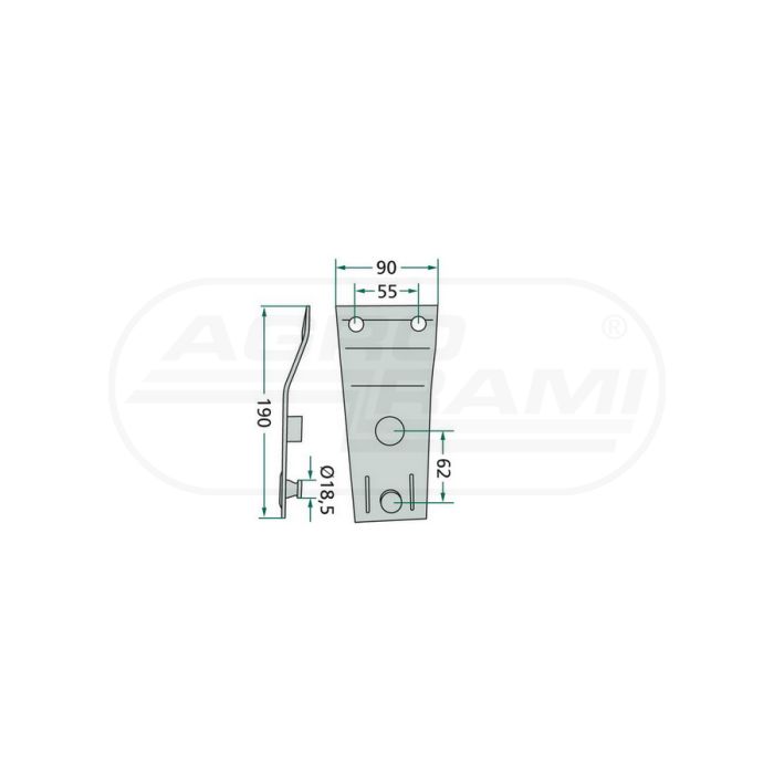Porte-couteau POTTINGER, Longueur-190, W-90, Trou-12,5, Distance des trous-55