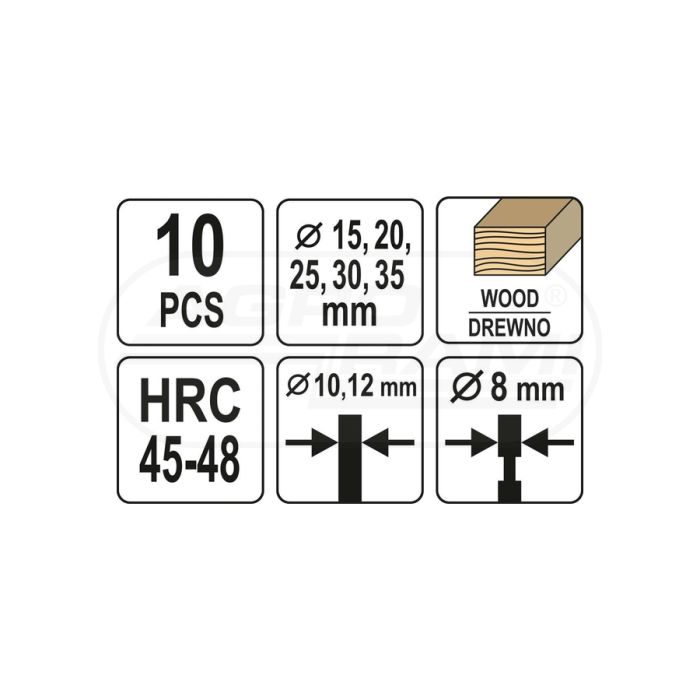 Jeu de flemmes-sciures pour bois YATO 15-35 mm 10 pièce