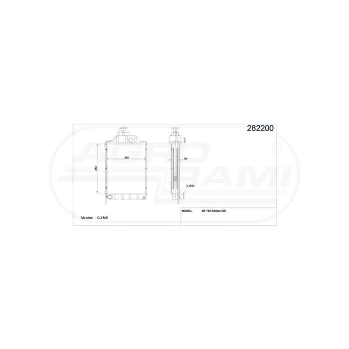 Refroidisseur liquide KALE 30/150-10, RADIATEUR LANDINI - RADIATEUR MASSEY FERGUSON 165 / 168 / 178 / 185 / 188 / 265 / 275 / 285 / 565 / 575 / 50 / 50B 897357M91 , 897358M3, 862772M1 , 885411M