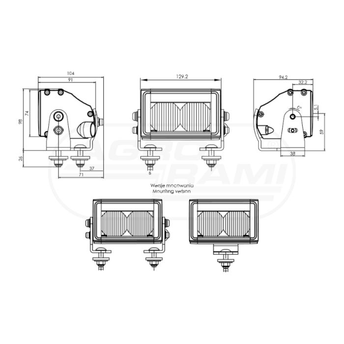 Predné LED kombinované svetlo, 12V–24V, s káblom 100 cm WAŚ