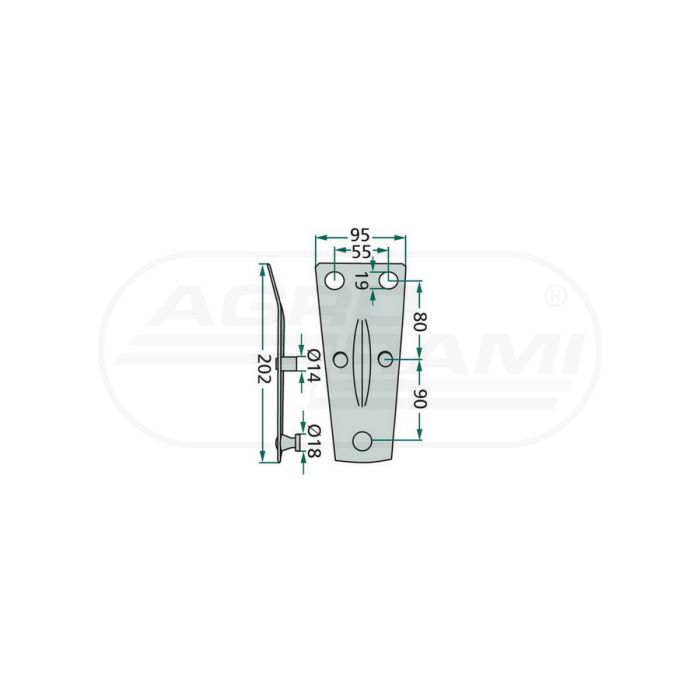 DEUTZ držiak noža 205x95mm, fi19, rozteč otvorov 55mm