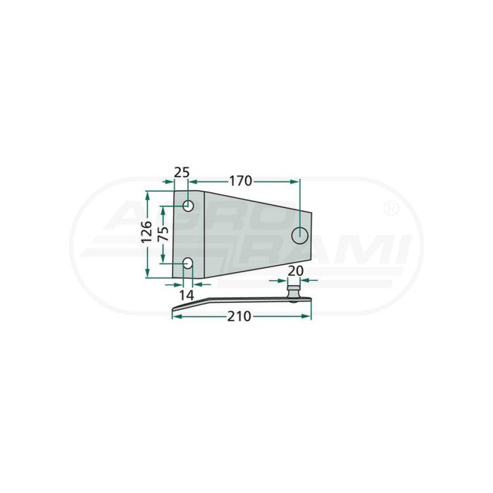 Držiak na nože VICON, dĺžka-210, šírka-125, otvory-14, vzdialenosť otvorov-75