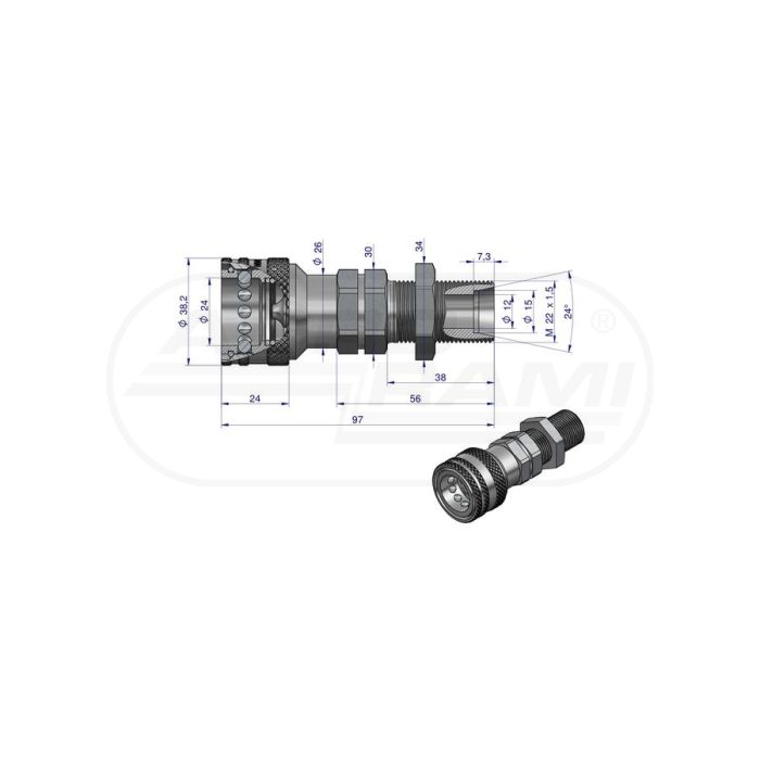 Hydraulická rýchlospojka, dlhá zásuvka M22x1,5, vonkajší EURO závit