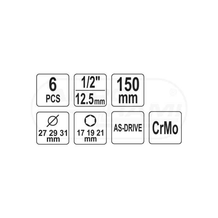 Sada dlhých nástrčných kľúčov na hliníkové disky CrMo, 3 nástrčky a 3 náhradné objímky YATO 1/2"