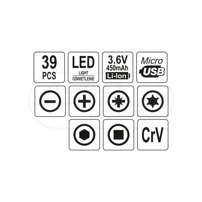 Presný akumulátorový skrutkovač s bitmi YATO 3,6V 39 ks
