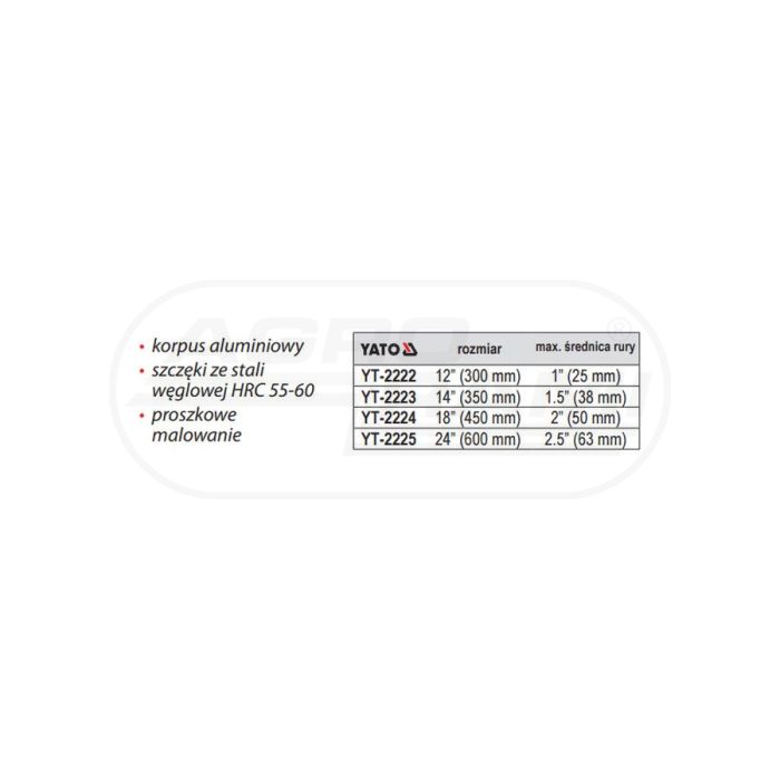 Hliníkový kľúč na rúry YATO 450 mm