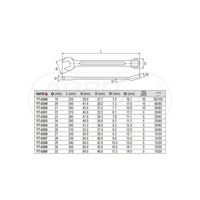 Plochý očkový kľúč s leštenou hlavou YATO 32 mm