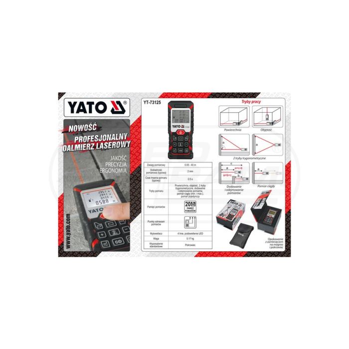 Laserový diaľkomer s funkciou kontinuálneho merania, výpočtu plochy a objemu YATO 0.2-40 m