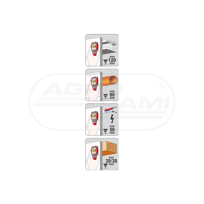 Detektor profilov a káblov pod napätím, merač vlhkosti dreva a stavebných materiálov 4v1 YATO