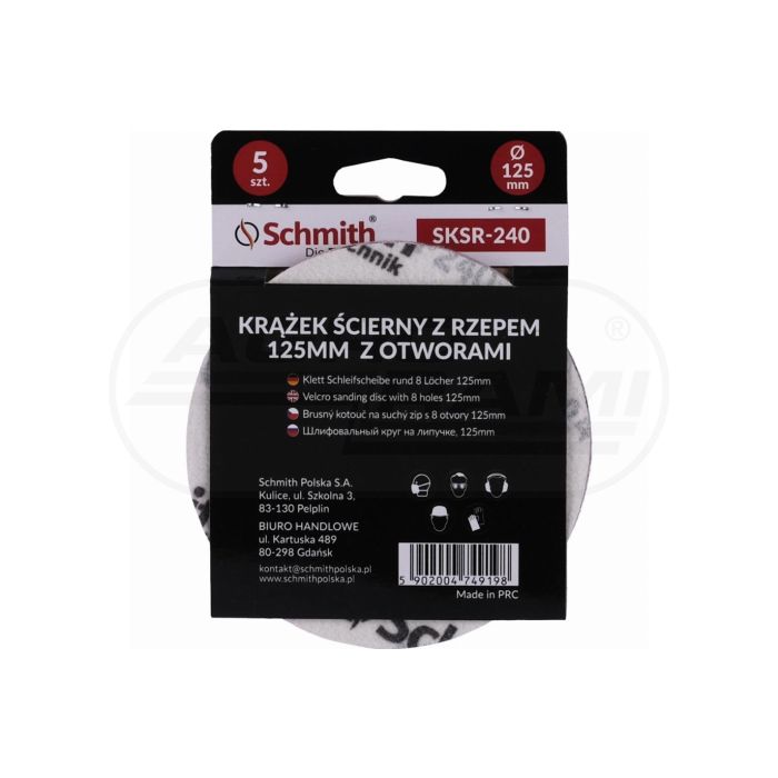 Brúsny kotúč na suchý zips 125mm s otvorom P240 5 kusov