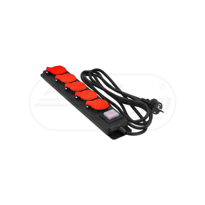 Gumová predlžovačka s vypínačom, 5 zásuviek, 5m SCHMITH