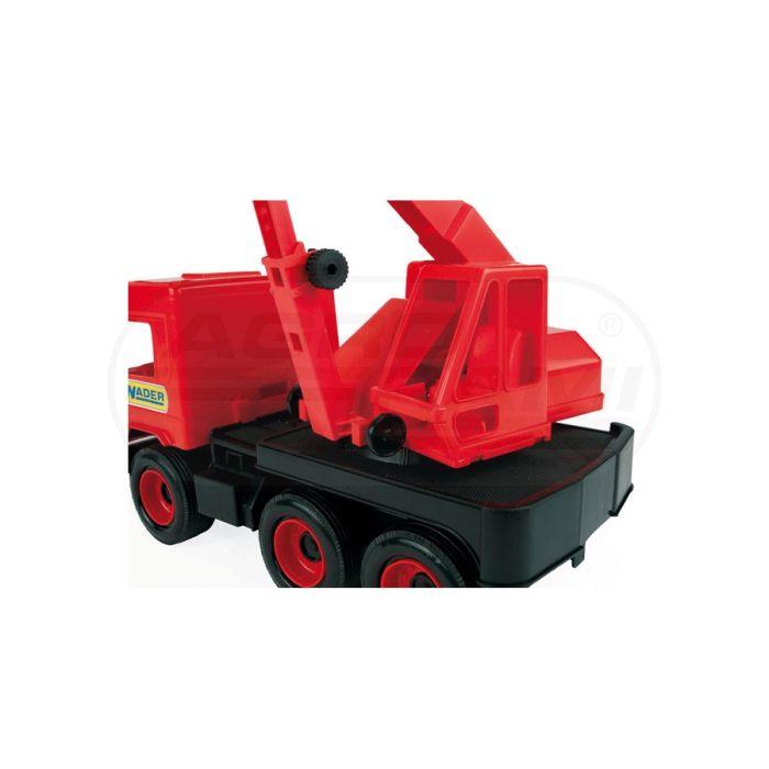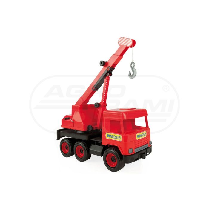 Stredný nákladný červený žeriav v kartónovej krabici
